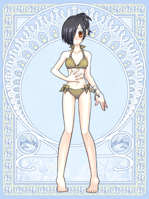 青白い銀髪をショートカットに切り揃えてある。―が、うなじから少量だが尻尾のように一房だけ(毛先は膝位まで有)束ねてある。